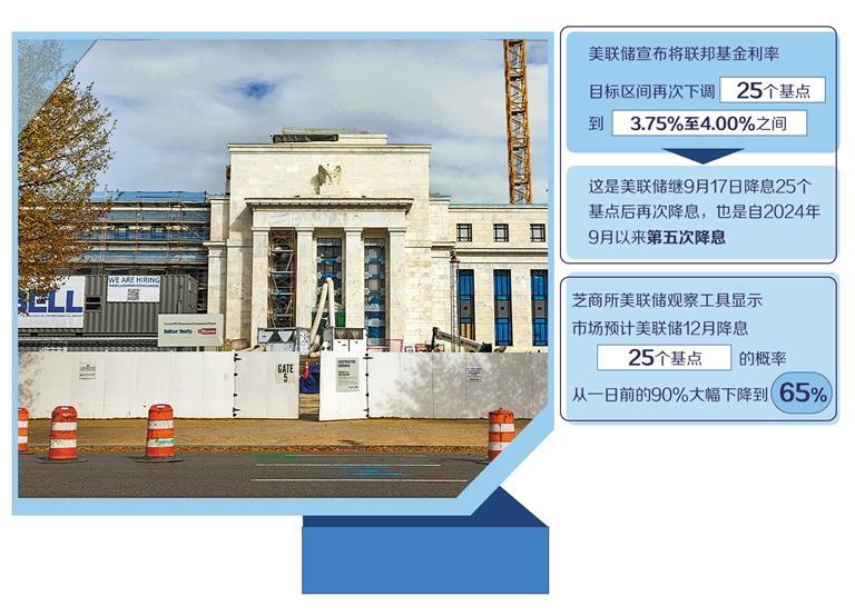 这是10月29日在美国首都华盛顿拍摄的美联储大楼外观。新华社记者 胡友松 摄 北京时间10月30日凌晨,美联储在结束为期两天的货币政策会议后宣布,将联邦基金利率目标区间进一步下调25个基点至3.75%至4.00%之间。这是美联储自9月17日降息25个基点以来第二次降息。这也是2024年9月以来第五次降息,符合市场预期。但降息决定该利率并未得到联邦公开市场委员会所有成员的支持。根据决议声明,两人投票反对降息 25 个基点,一人主张更激进地降息 50 个基点,另一人主张维持利率不变。这两次截然相反的投票揭示了美联储内部在政策方向上的深刻分歧。本次利率会议的另一个重要方面是美联储缩表政策的调整。美联储决定放弃量化紧缩(QT),并在一个月内结束缩表计划,这意味着长达三年半的缩表操作即将结束。回顾这个过程,美联储从2022年6月开始缩减资产负债表,去年6月步伐开始放缓,将美国国债每月收缩幅度从350亿美元减少到250亿美元,并进一步减少到5美元。今年4月份就达到了100万。美联储主席杰罗姆·鲍威尔表示,过去三周货币市场的流动性已经收紧,限制了央行进一步缩减资产负债表的好处。目前银行准备金水平仅略高于充足水平。对于后续降息路径,鲍威尔主席的立场比外界预期更强硬。他表示,委员会对于12月的政策反应意见存在明显分歧,12月降息并不确定。我们已经明确表达了我们的理解。政府“关门”可能会影响12月的利率会议。如果您没有数据,您可能需要更加小心。缺乏经济指标可能成为暂停利率调整的理由。因此,市场减少了对美联储12月降息的押注。根据芝商所FedWatch工具,市场预计美联储将降息12 月下降 25 个基点,从前一天的 90% 降至 65%。美股三大指数全线下跌,盘中全部翻绿,纳指则迅速翻红。道琼斯工业平均指数和标准普尔500指数尾盘跌幅收窄,美元指数上涨。一些分析师表示,鲍威尔给美联储未来政策前景增添了重大不确定性。美国政府“关门”让市场陷入经济指标真空。在此期间,美国劳工统计局迟迟发布的美国9月消费者价格指数(CPI),让市场一睹美国经济现实的“冰山一角”。数据显示,9月份,剔除食品和能源的核心CPI环比上涨0.2%,同比上涨3.0%,创6月以来最低水平。鲍威尔主席认为,目前的通胀水平实际上离2%的目标不远,不包括i关税的影响。然而,9月份非农就业数据的缺乏使得美联储难以准确评估经济和劳动力市场的真实状况。美联储目前在稳定物价和促进就业的双重目标之间陷入两难境地。过早降息可能会导致通胀再次上升。然而,长期维持限制性利率将会抑制劳动力市场的活力。在平衡这两个目标的过程中,鲍威尔主席认识到美联储的决策不存在绝对安全的路径。在没有数据的情况下,美联储只能“摸着石头过河”。美国政府“关门”的影响不仅仅局限于数据的缺乏。美国国会预算办公室在最近的一封公开信中警告称,持续的“停摆”可能会给美国经济造成 70 亿至 140 亿美元的损失。而且持续的时间越长,影响力就越大尽管政府关门并没有改变美联储的政策目标,但财政政策的缺失使得货币政策环境变得更加复杂。与此同时,来自白宫的政治压力不断加大。特朗普总统近期加大了对美联储的公开批评力度,不仅指责鲍威尔主席行动迟缓,还暗示鲍威尔可以通过人事决策影响美联储决策。一些分析师表示,这种公众压力可能会威胁美联储的独立性,货币政策决策可能更多地受到政治考虑而非经济基本面的影响。近期,美国多家大公司纷纷宣布裁员。亚马逊宣布将在全公司范围内裁员 14,000 名员工。 HeMedia巨头派拉蒙也宣布将裁员至少1000名员工跨多个部门,包括哥伦比亚广播公司新闻。联合包裹服务公司宣布今年将裁员 48,000 名员工。 Target宣布将在总部裁员1800人,这是该公司10年来首次大规模裁员。鲍威尔表示,许多公司在解释裁员原因时都引用了人工智能(AI)的影响,我们正在密切关注这一事态发展。有分析指出,当前美国经济增长主要依赖于人工智能基础设施投资。剔除数据中心和人工智能相关投资,预计2025年上半年制造业、零售、服务业和房地产等传统经济支柱几乎为零增长。至于人工智能投资是否存在过热风险,鲍威尔认为,目前的情况与20世纪90年代的互联网泡沫有本质区别,因为当今许多人工智能公司都有可行的收入模式和商业基地。美国经济另一个不容忽视的风险是美国国债将持续扩张。美国财政部最新数据显示,美国国债总额已突破38万亿美元,创下新纪录。之后,将会产生巨额利息。到2025年,美国债务利息支付预计将达到1.4万亿美元,占联邦税收收入的26.5%。这意味着美国财政部每月要支付超过1000亿美元的利息。每分钟返还200万美元。彼得·F·彼得森基金会主席迈克尔·彼得森“利息成本已成为预算中增长最快的部分。过去十年我们在利息上花费了 4 万亿美元,未来十年这一数字将达到 14 万亿美元。这些成本挤出了未来的关键投资,损害了所有美国人的经济福祉。”更令人担忧的是,从资产负债表的角度来看e、美国政府已经资不抵债,但债务却持续增长。这种不可持续的局面引起了国际评级机构的关注。欧洲信用评级机构Scope Ratings最近将美国主权评级从“AA”下调至“AA-”,理由是美国财政持续恶化和政府治理标准下降。该机构预计,如果不进行实质性改革,到2030年,美国政府的债务与国