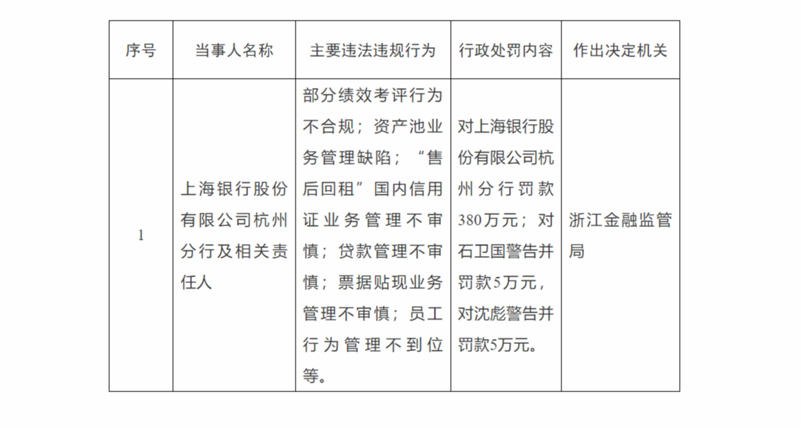 吃瓜热门上海银行杭州分行因资产集团业务管理失败而被罚款380万元人民币。 由admin打开2025年8月6日2025年8月6日对“上海银行杭州分行因资产集团业务管理失败而被罚款380万元人民币。”作出评论 8月4日,上海银行有限公司的财务监管Zhijiang监管办公室的行政犯罪信息传播形式。评估杭州杭州分支机构绩效的某些行为并未表现出遵守。资产组的业务管理失败。 “租赁后”国家信贷管理宪章并不明智。贷款管理不明智。发票的业务管理不明智。员工行为管理不明智。其他人则被380万元人民币罚款。 Shi Weiguo被警告并被罚款50,000元,而Shen Biao被罚款50,000元。